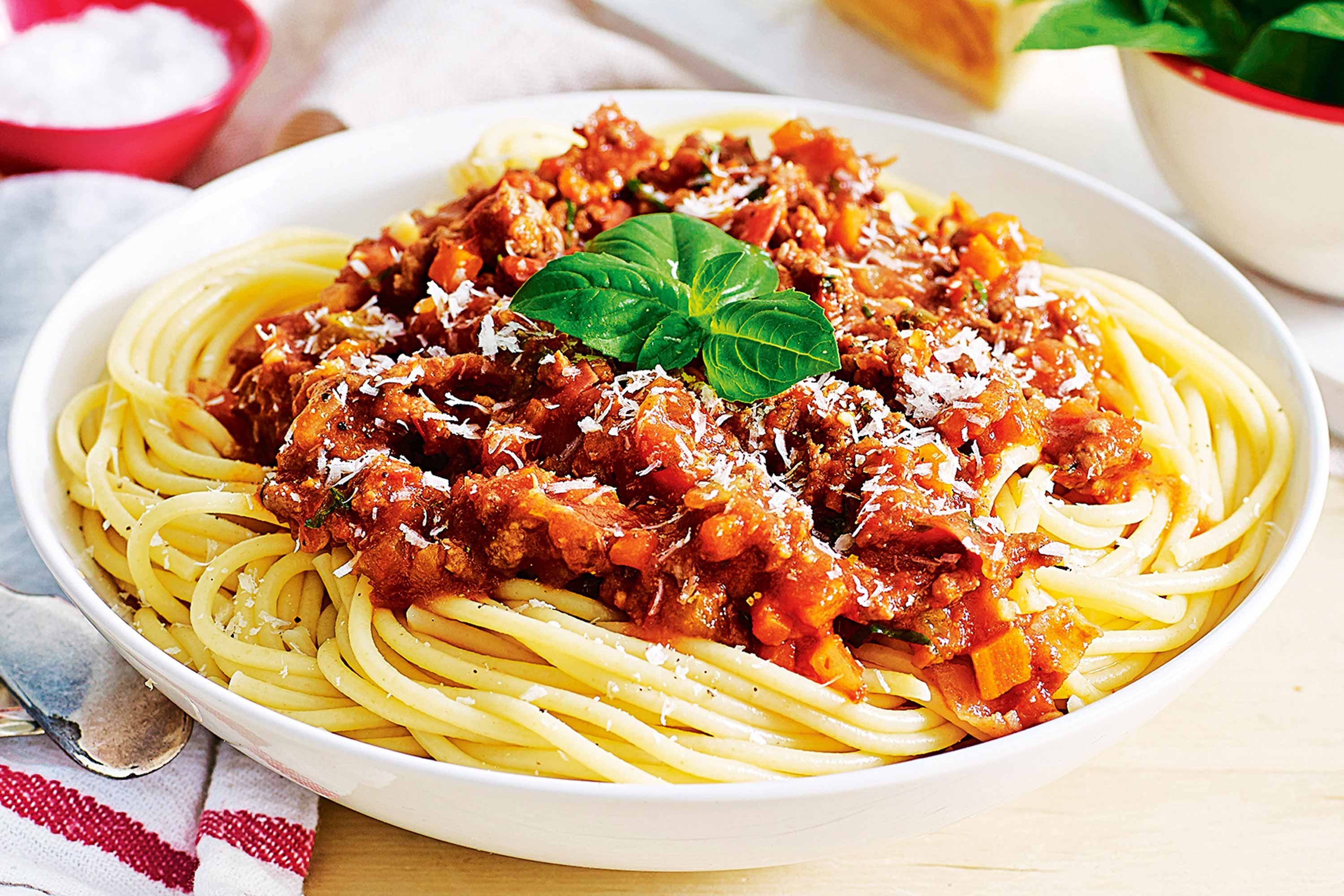Cook spaghetti according to packet instructions and weigh dry before cooking